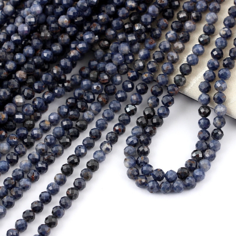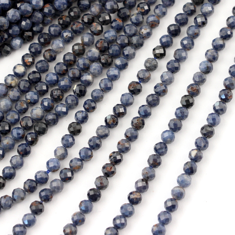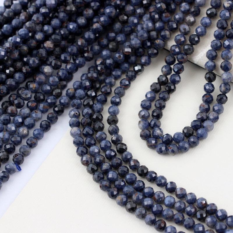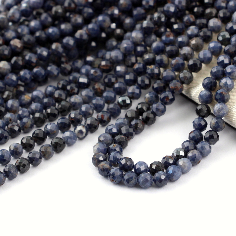 Fasetowane kulki szafiru naturalnego. W pojedynczych koralikach mogą zdarzyć się wtrącenia dodające nieco rustykalnego wyglądu kamieniom.