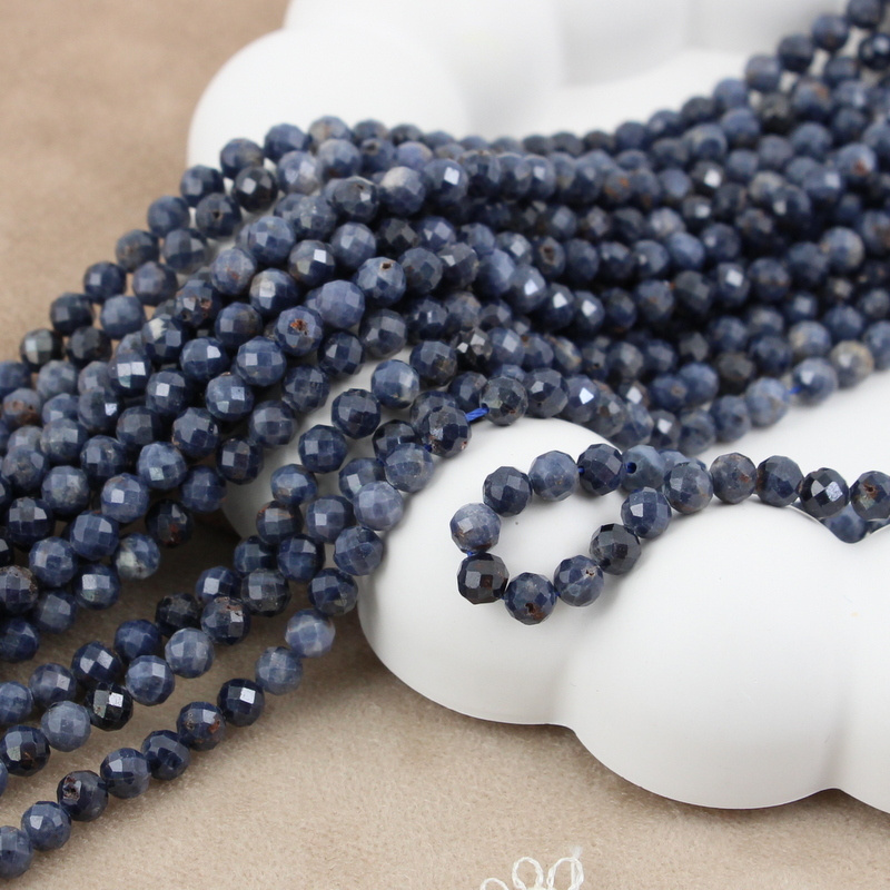 Fasetowane kulki szafiru niebieskiego. Szafir to tzw. kamień mądrości.
