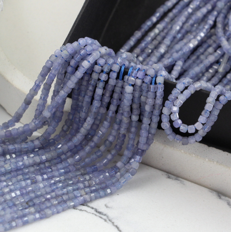 Fasetowane kostki naturalnego tanzanitu ok. 2,8mm - cały sznur ok. 39cm.