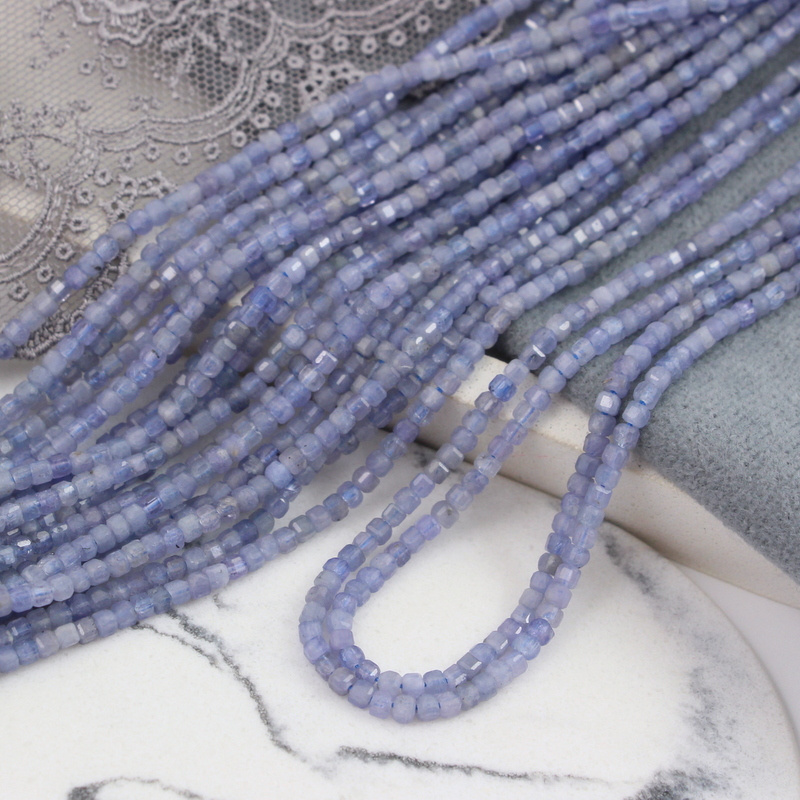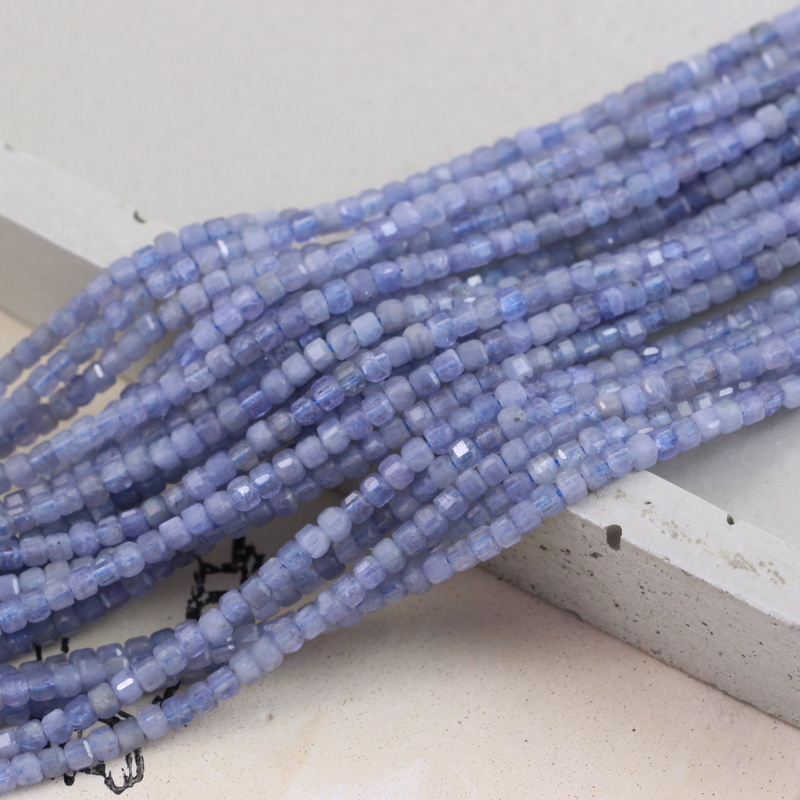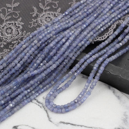Tanzanit kostka fasetowana 3mm [sznur 39cm]