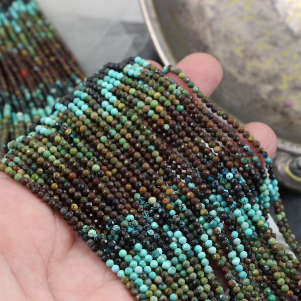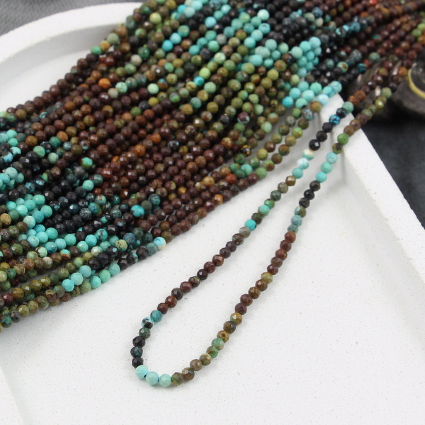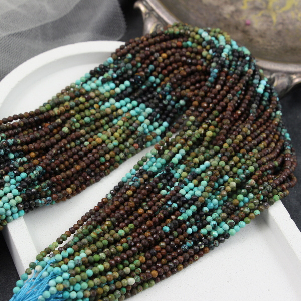 Fasetowane kuleczki naturalnego turkusu ułożone z efektem cieniowania.