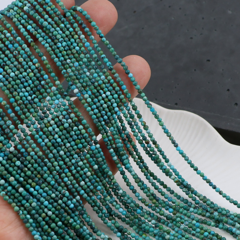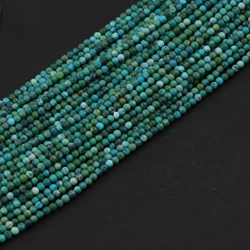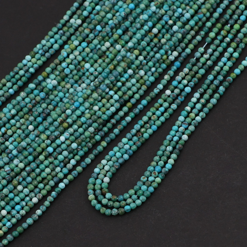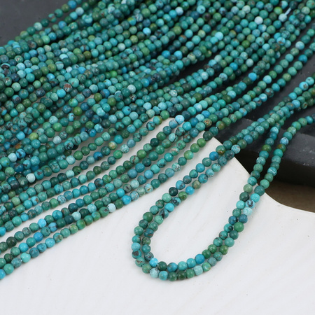 Gładkie, drobne kulki naturalnego turkusu - kamienia z charakterem, różne odcienie zieleni.