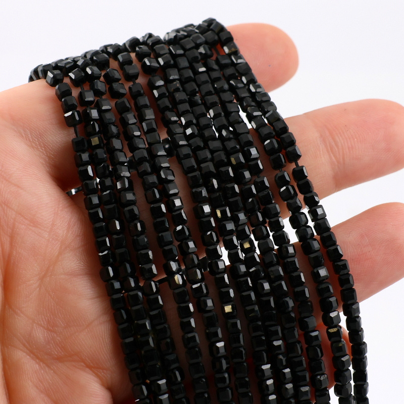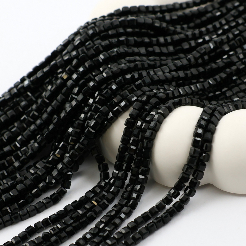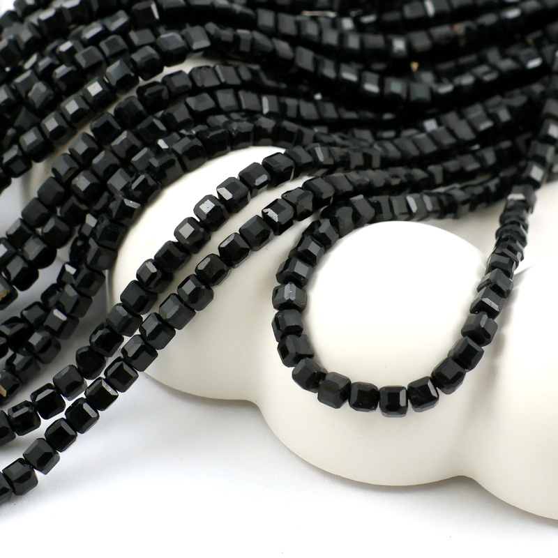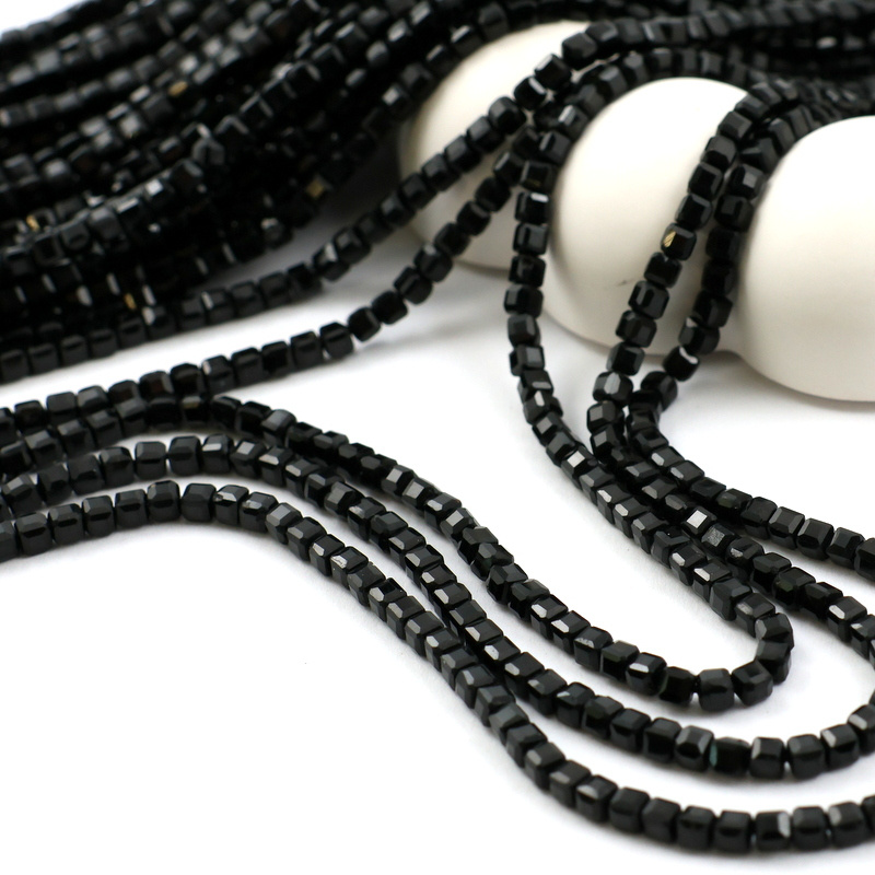 Turmalin czarny kostka fasetowana 3mm [sznur 39cm]