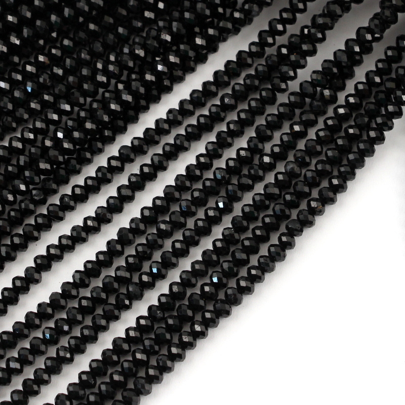 Czarny turmalin - małe szlifowane oponki w rozmiarze ok. 4x3mm. Cena za sznur.
