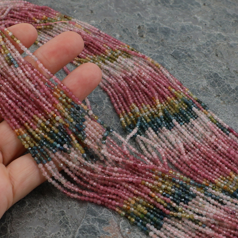 Turmalin multikolor cieniowany kula fasetowana 2,5mm [sznur 38cm]