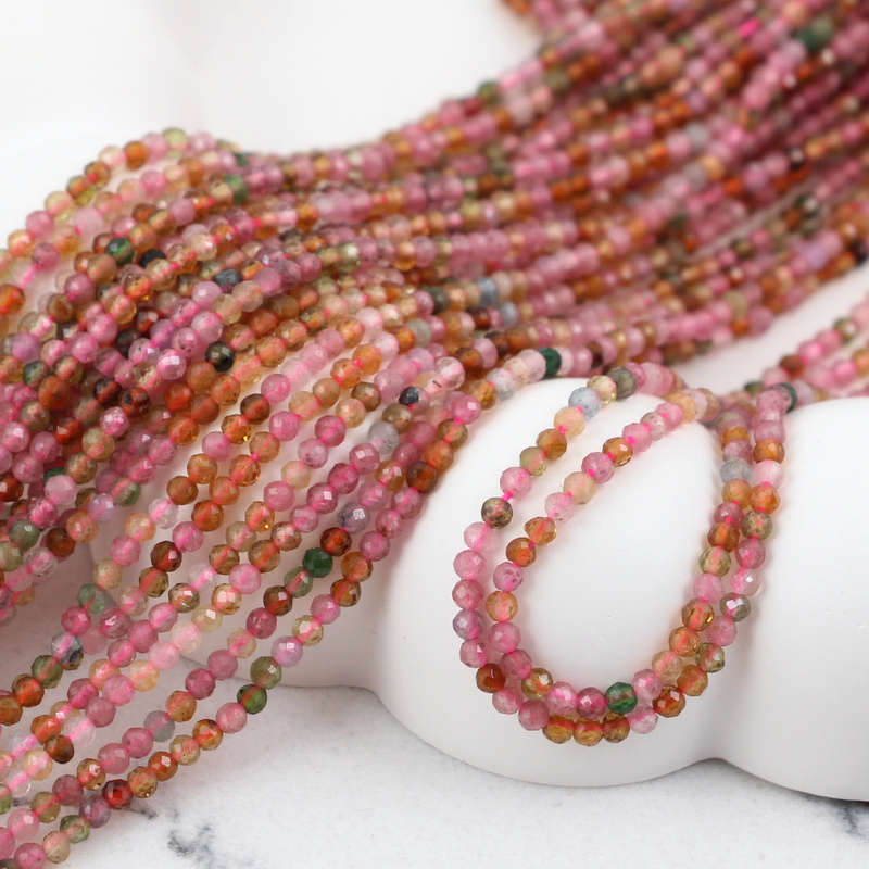 Turmalin multikolor kula fasetowana 2mm [sznur 39cm]