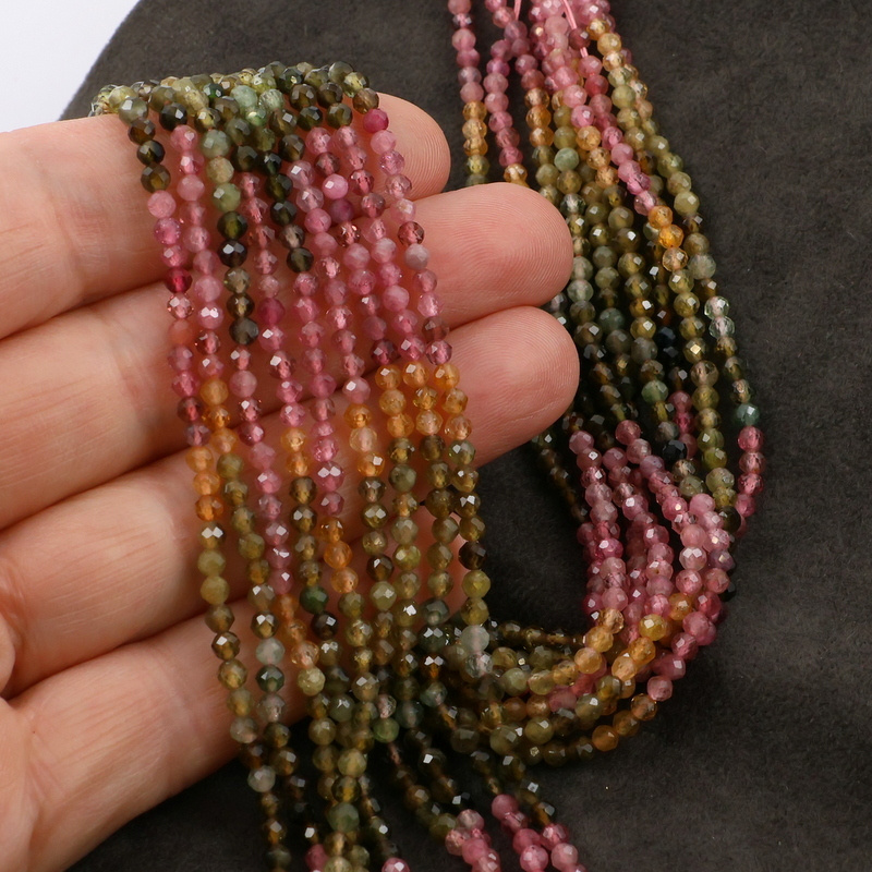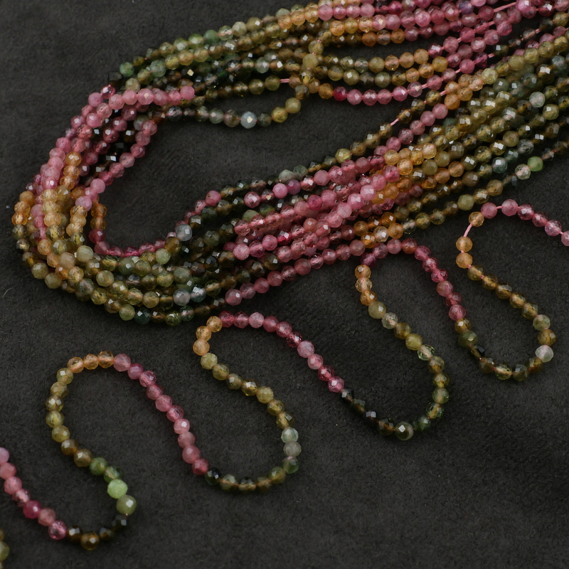 Turmalin multikolor kula fasetowana 3mm [sznur 39cm]