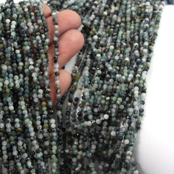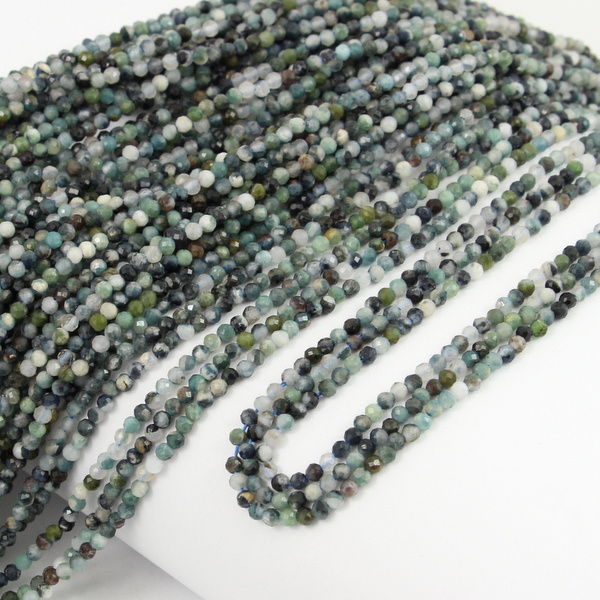 Małe kulki fasetowanego turmalinu w odcieniach niebieskich (naturalny, ale rzadki kolor w turmalinie).