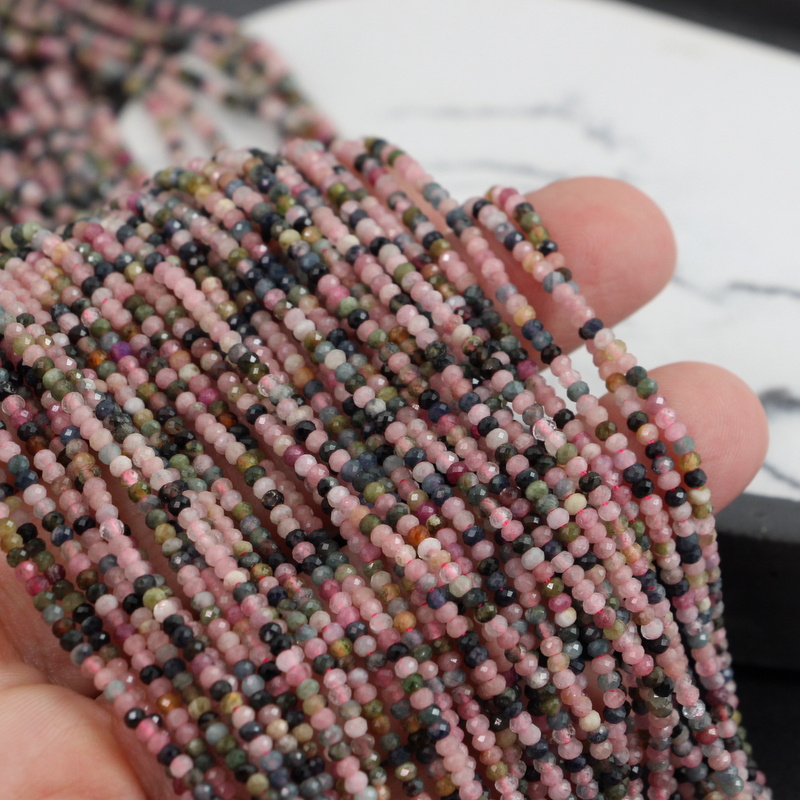 Turmalin kolorowy, drobniutkie oponki w rozmiarze ok. 2x1,5mm.