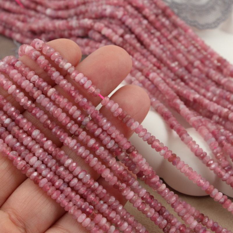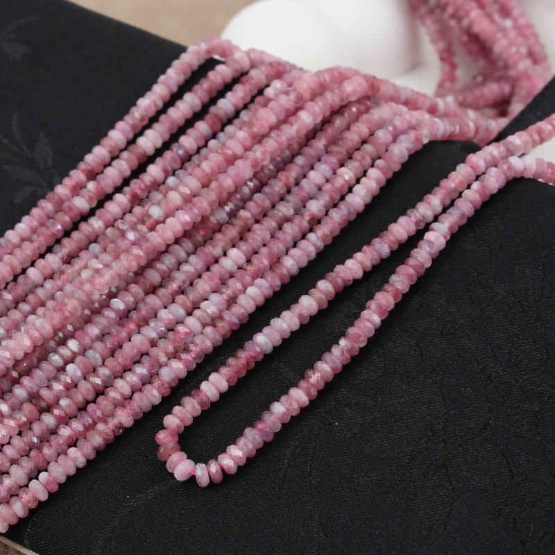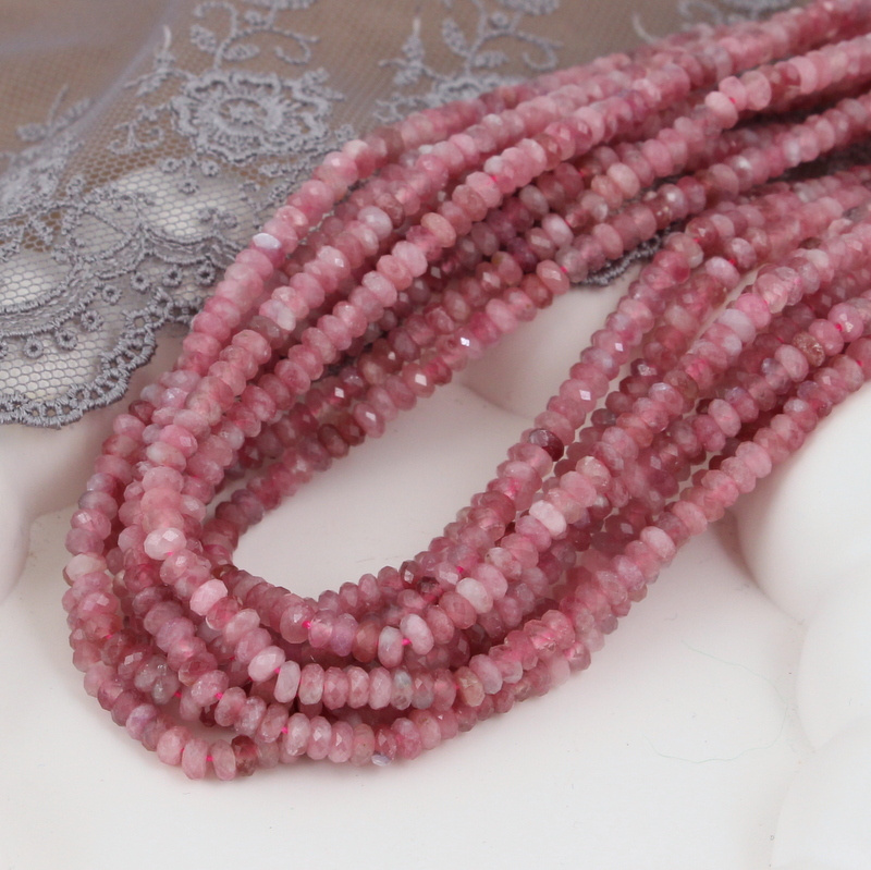 Różowy turmalin (rubelit) - małe szlifowane oponki /dyski w rozmiarze ok. 3,6-4 x 2mm.