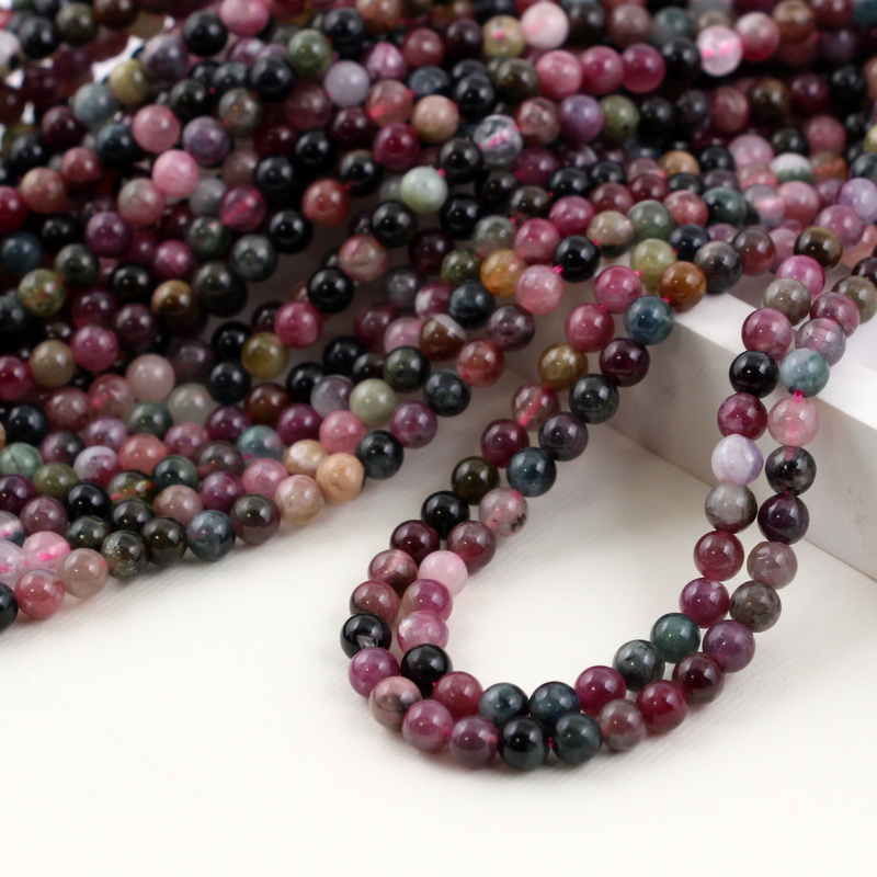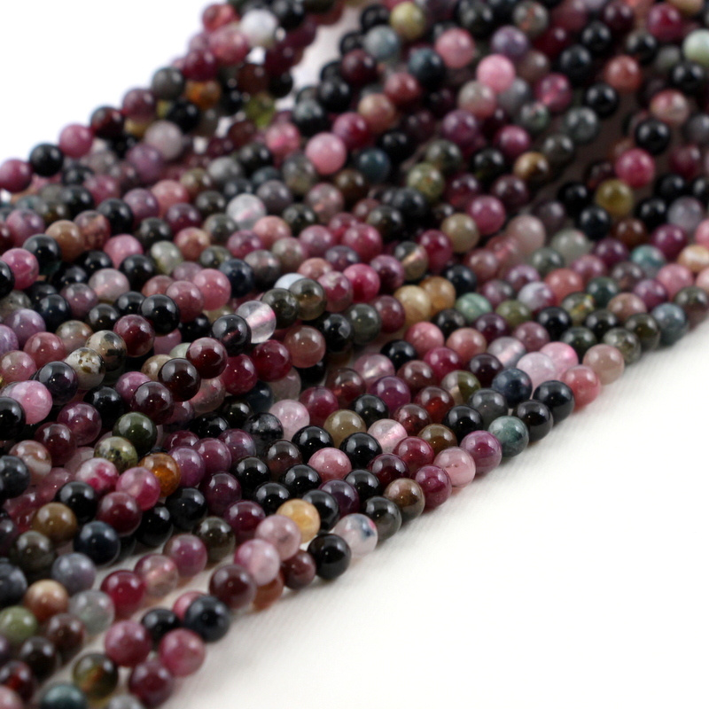 Kolorowy turmalin - małe gładkie kuleczki w rozmiarze ok. 4,5mm.