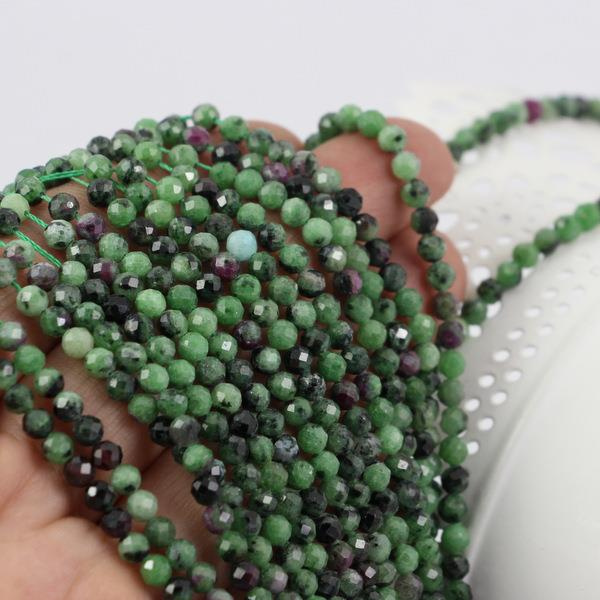 Zoizyt z rubinem kula fasetowana 4mm [sznur 39cm]