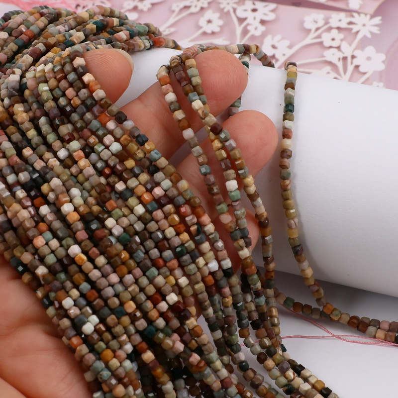 Delikatne, naturalne kosteczki z agatu Alashan o średnicy ok. 3mm.