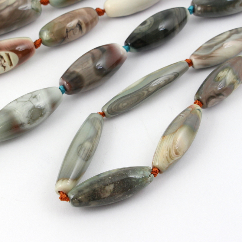 Agat Alashan – niezwykła odmiana agatu - wrzeciona / oliwki o różnej grubości i długości. Agat Alashan pochodzi z piaszczystej pustyni Ałaszan w Mongolii Wewnętrznej. Charakteryzuje się subtelnymi, koncentrycznymi wzorami przypominającymi słoje drewna, „oczy” lub formy pejzażowe.
