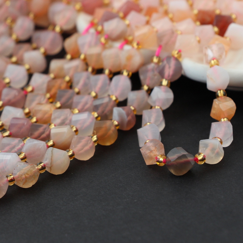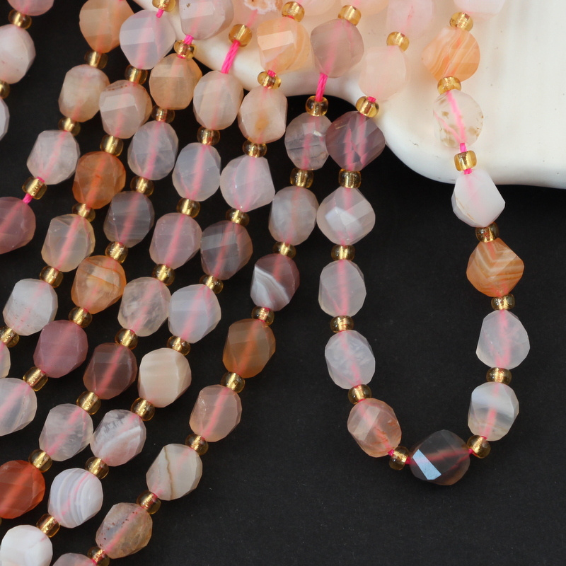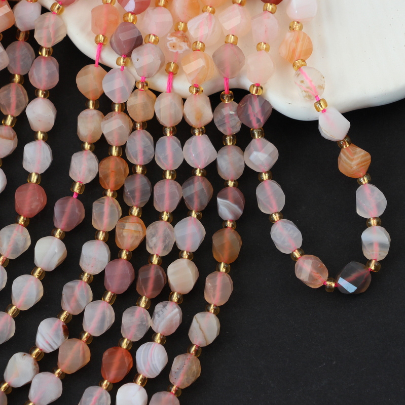 Agat botswana różowa kula twist fasetowana 8mm [sznur 36cm]