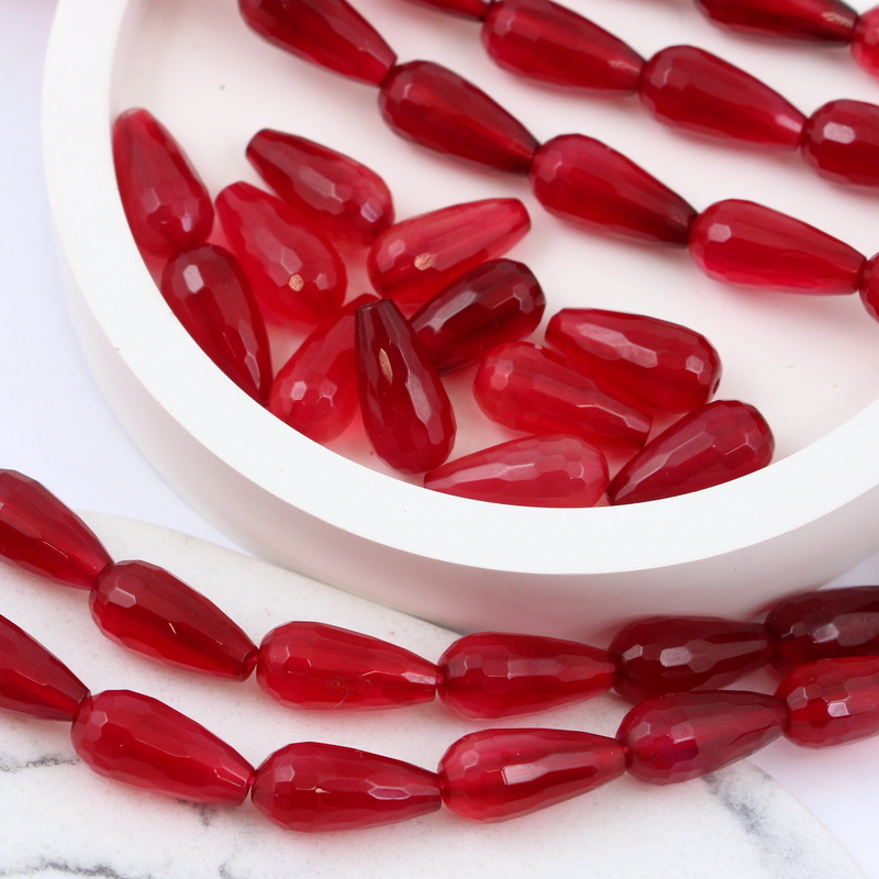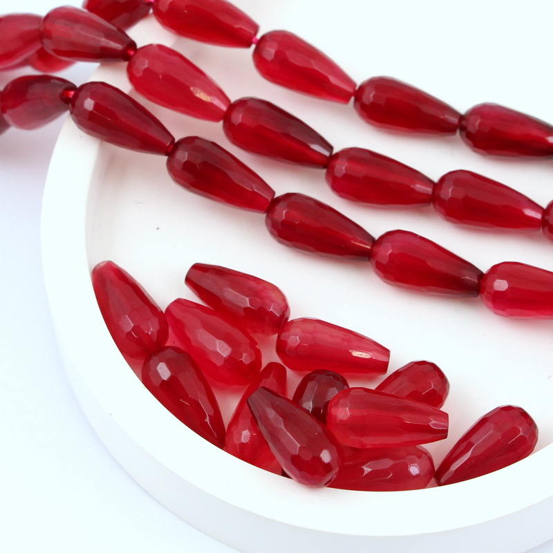 Brazylijski agat - fasetowana kropla w kolorze różowo-bordowym (kamienie o różnym nasyceniu barwy).