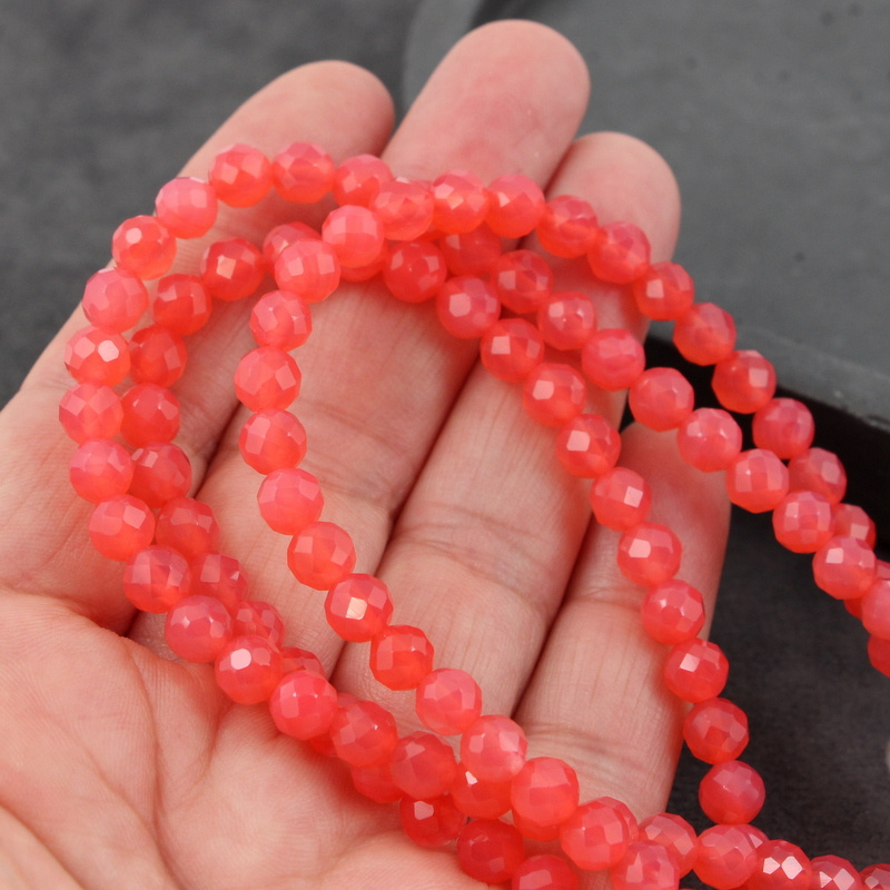 Agat brazylijski kula fasetowana malinowa różowa 6mm