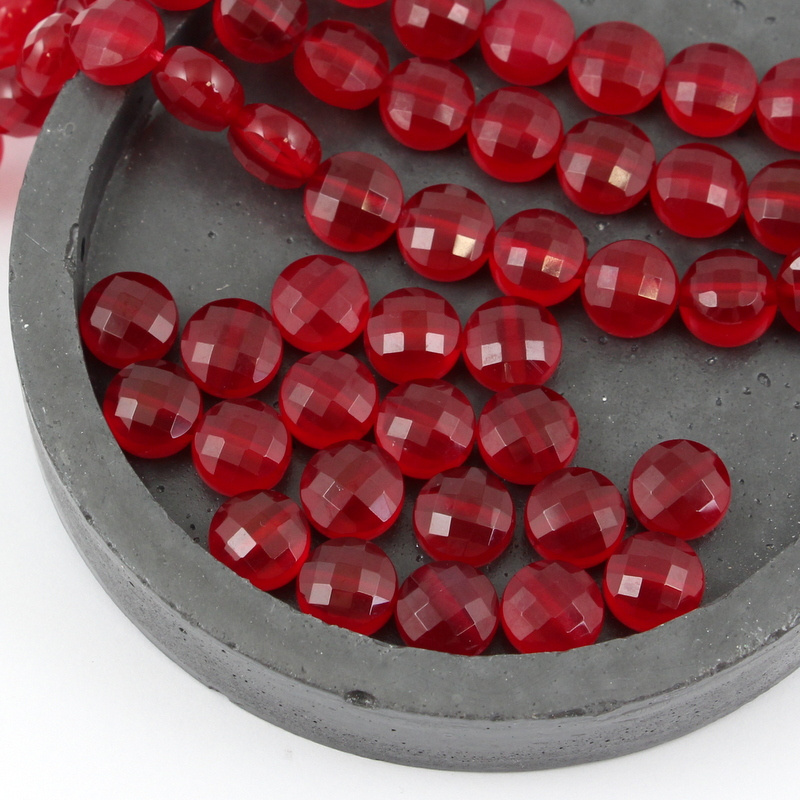 Brazylijski agat - fasetowana moneta w kolorze bordowym.