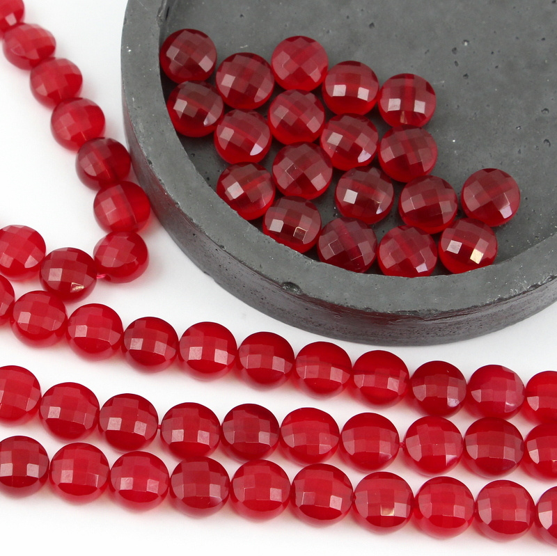 Agat brazylijski moneta fasetowana bordowa 10mm