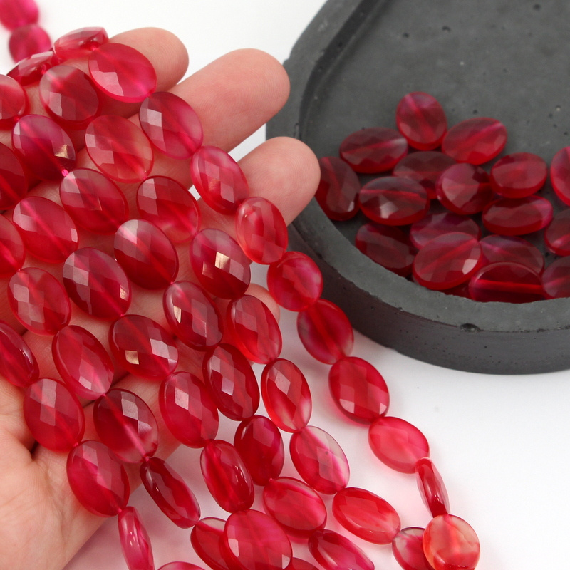 Brazylijski agat - fasetowany owal w kolorze różowym (kamienie częściowo transparentne).