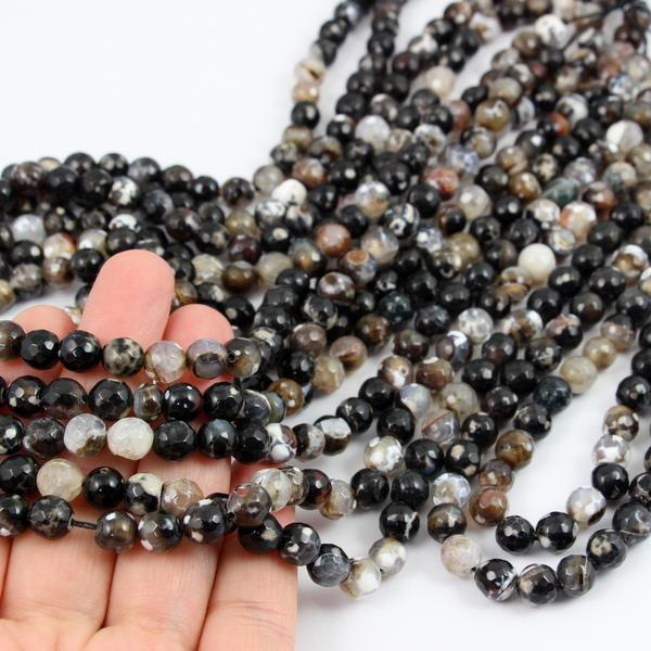 Agat matrix kula fasetowana 8mm [sznur 36cm]