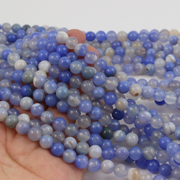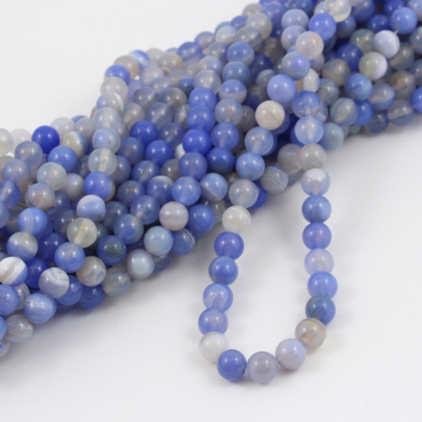 Agat niebieski kula gładka 8mm [sznur 38cm]