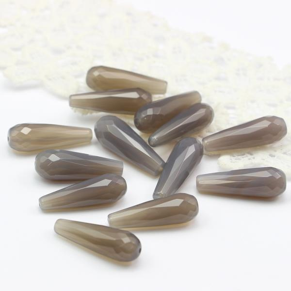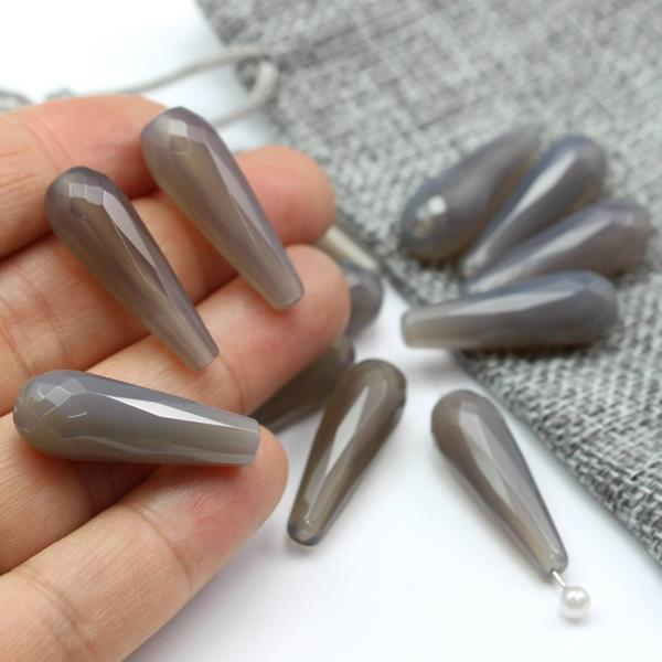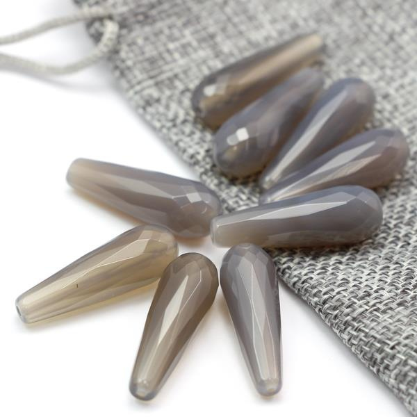 Długa i smukła kropla szarego agatu o ciekawym szlifie.