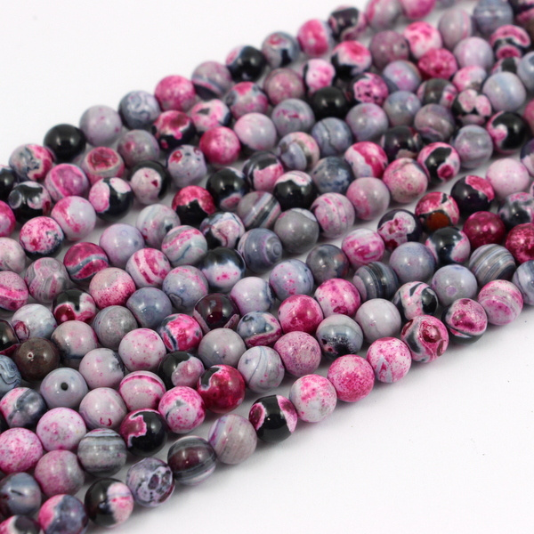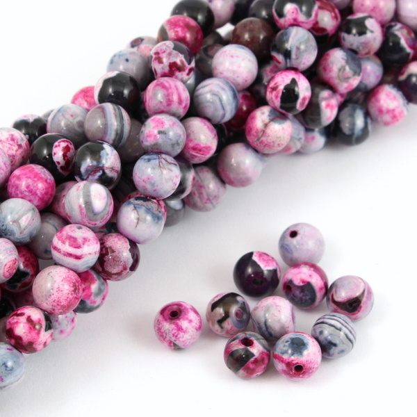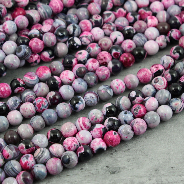 Gładkie kamienie agatu w odcieniach różu, szarości i czarnego. Kuleczki mogą mieć delikatne niedoskonałości np. małe wgłębienia.