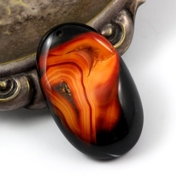 OpisDuża i wysoka zawieszka agatu. Kamień na wierzchu ma surową powierzchnię, która jest zabarwiona na kolor pomarańczowy. Oryginalny wygląd, polecamy do rzemienia lub łańcuszka.