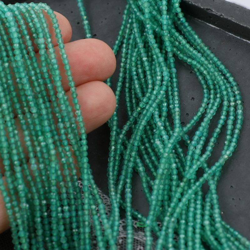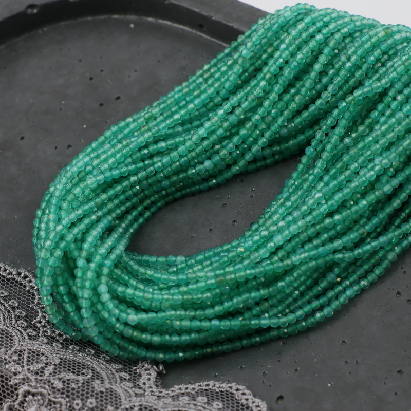 Agat zielony kula fasetowana 2mm [sznur 39cm]
