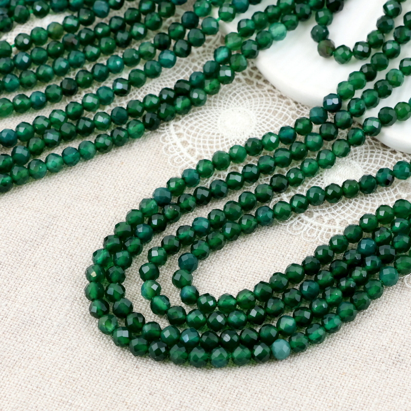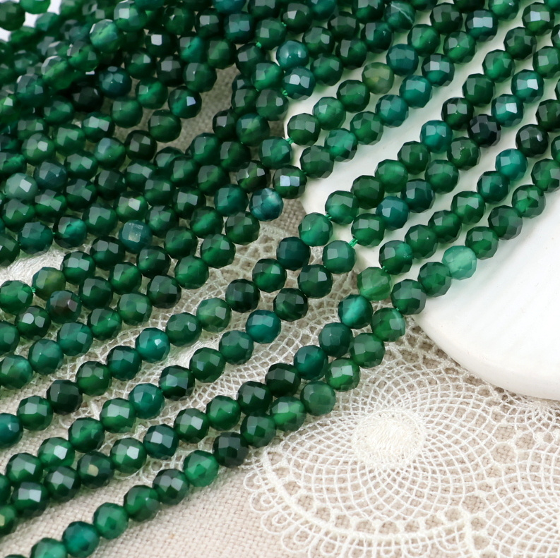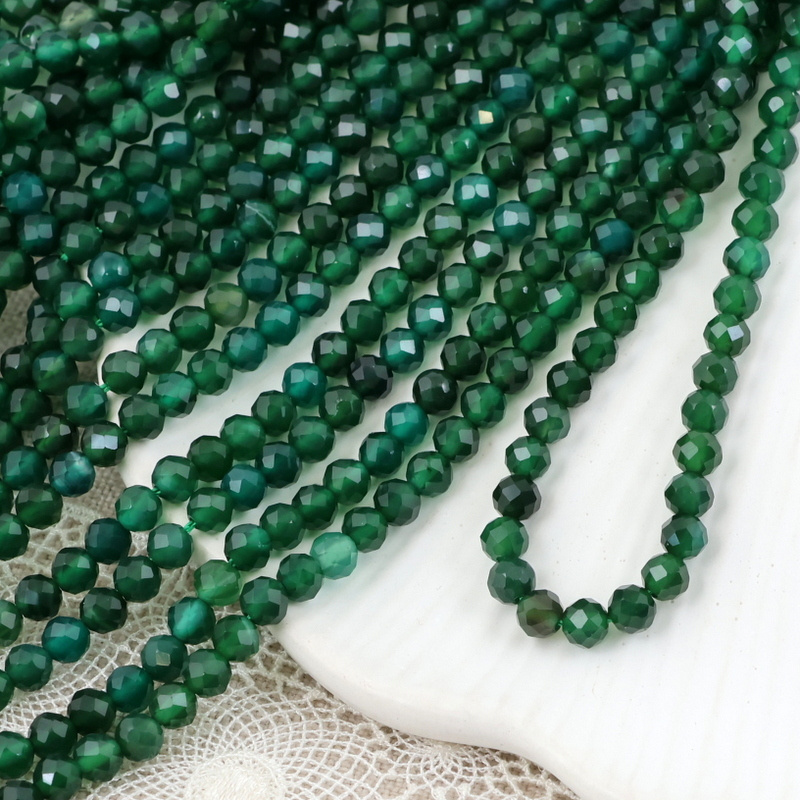 Drobne, fasetowane kule agatu zielonego.