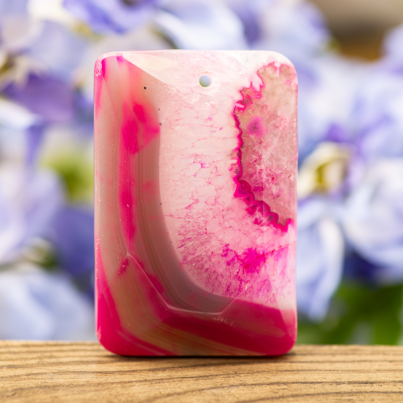 Zawieszka agatu. Obustronnie polerowana z przewierconym otworem od frontu. Posiada niewielkie naturalne, dekoracyjne ubytki.