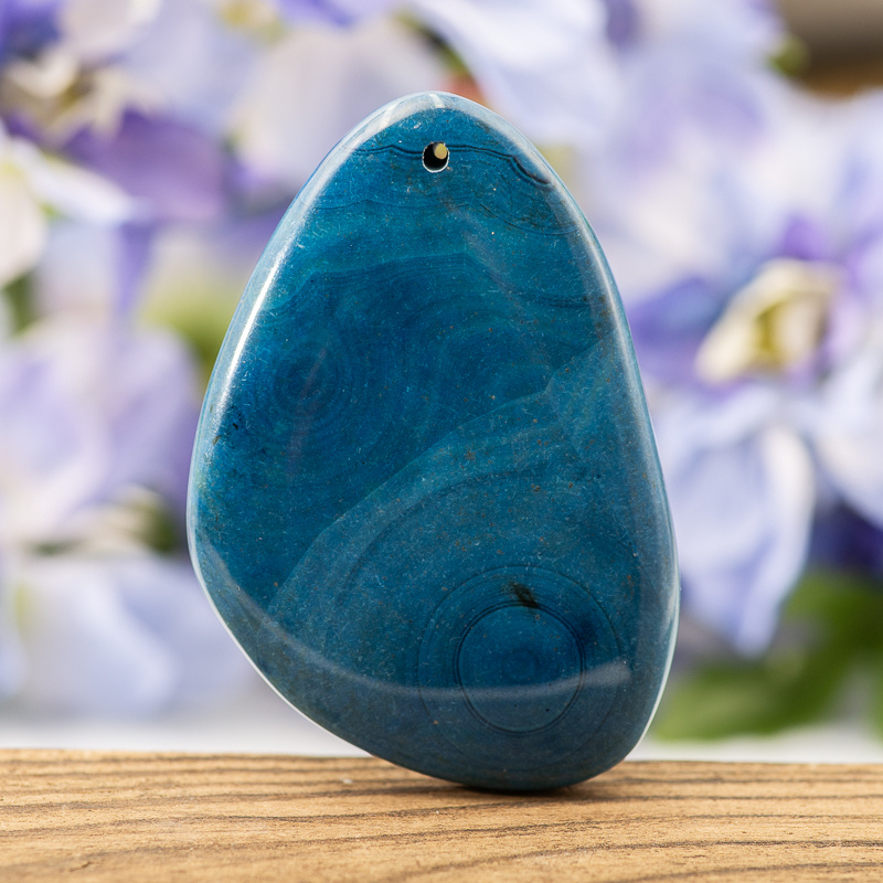 Zawieszka agatu. Obustronnie polerowana z przewierconym otworem od frontu.