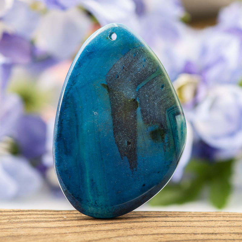 Zawieszka agatu. Obustronnie polerowana z przewierconym otworem od frontu.