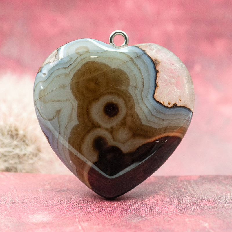 Zawieszka agatu z metalowym uszkiem pozwalającym na przewleczenie łańcuszka, rzemienia itp. Obustronnie polerowana.