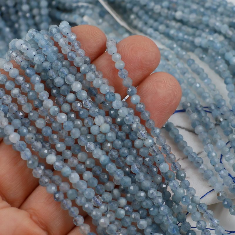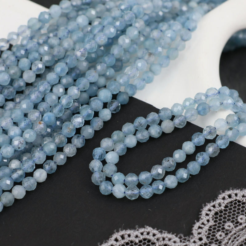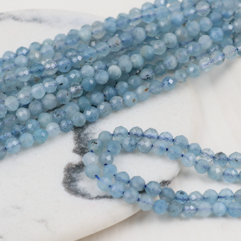 Akwamaryn kula fasetowana 3,5mm [sznur 39cm]