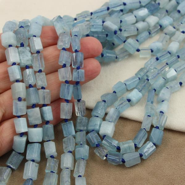 Gładkie nieregularne wałki / bryłki akwamarynu.
