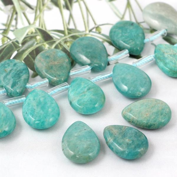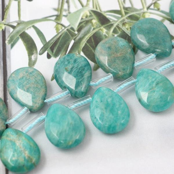 Kamienie amazonitu w kształcie fasetowanych łezek.