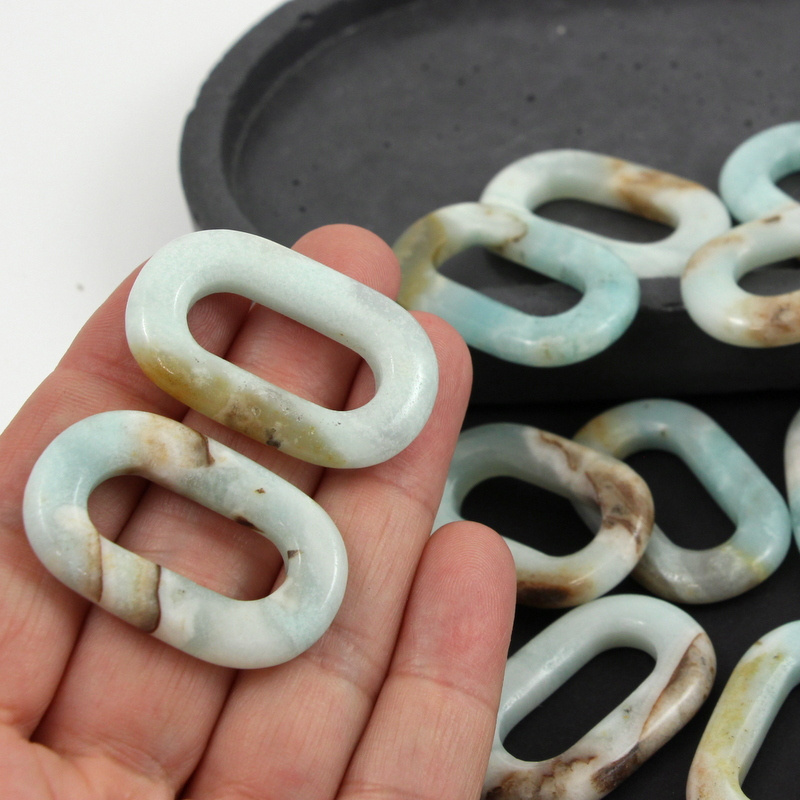 Gładki owal / okienko. Kamienie nie są wiercone, wielkość otworu w okienku: 25x10mm.