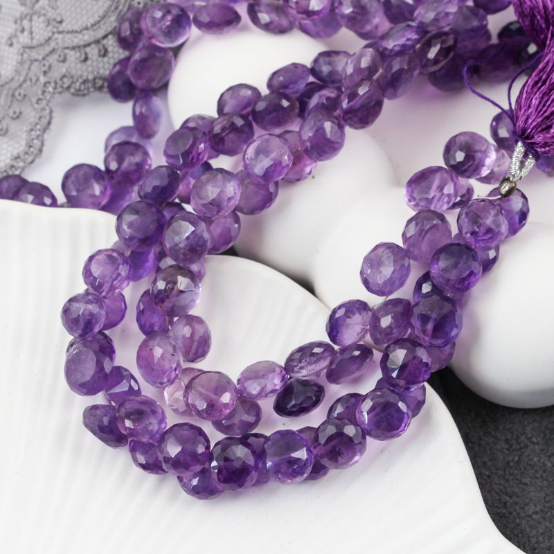 Fasetowanie pięknie wydobywa blask ametystu, sprawiając, że idealnie sprawdzi się w kolczykach, zawieszkach czy innych projektach biżuteryjnych. Doskonały do biżuteryjnych projektów jubilerskich, a także do wire wrappingu.