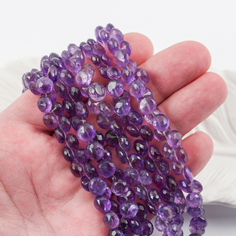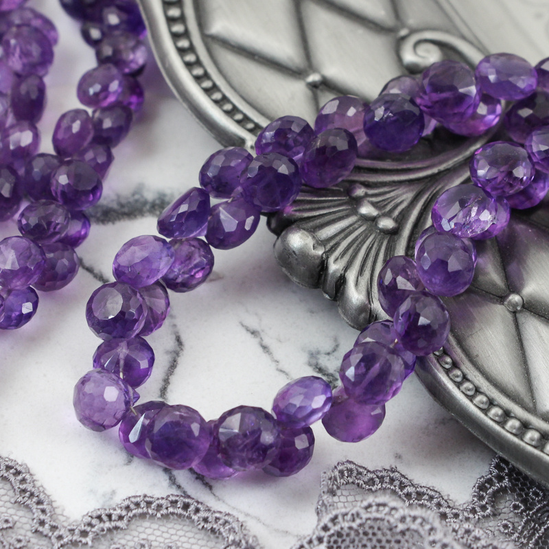 Fasetowanie pięknie wydobywa blask ametystu, sprawiając, że idealnie sprawdzi się w kolczykach, zawieszkach czy innych projektach biżuteryjnych. Doskonały do biżuteryjnych projektów jubilerskich, a także do wire wrappingu.