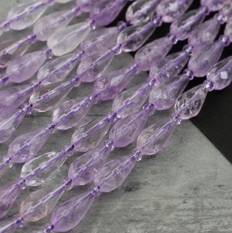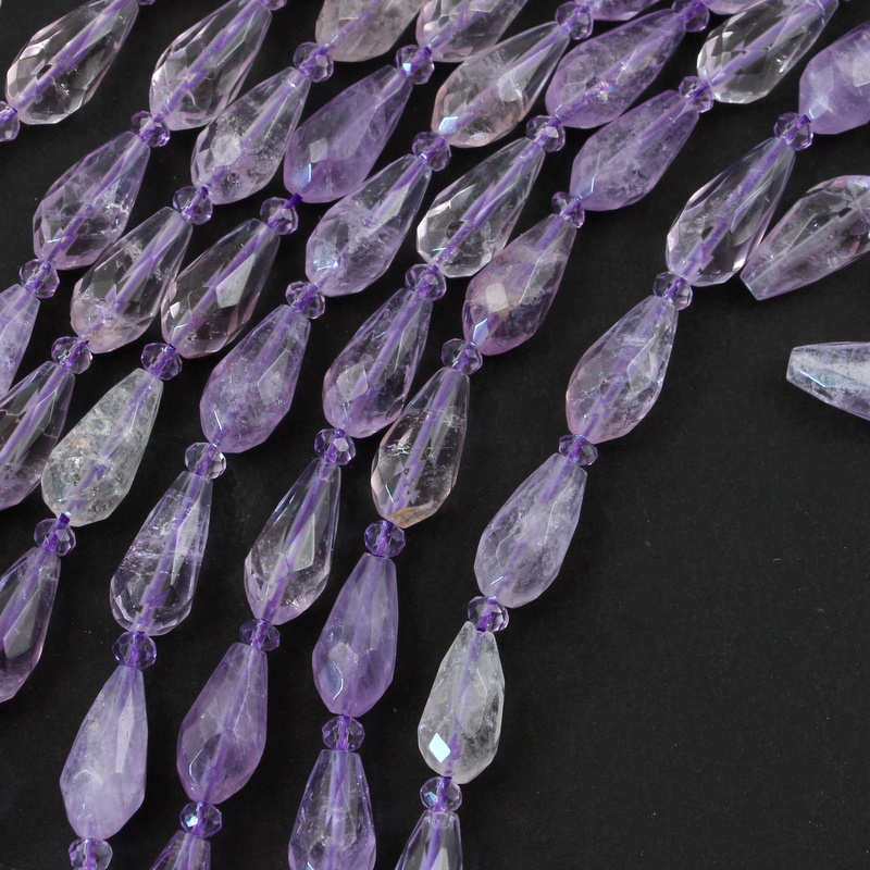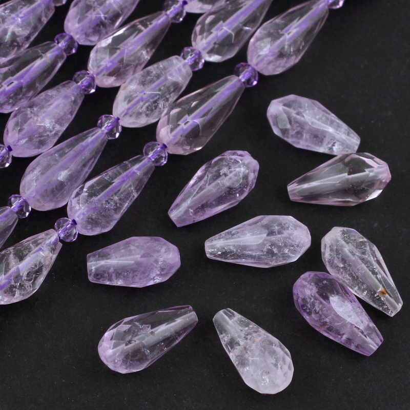 Naturalny ametyst w eleganckim szlifie fasetowanej kropli.
