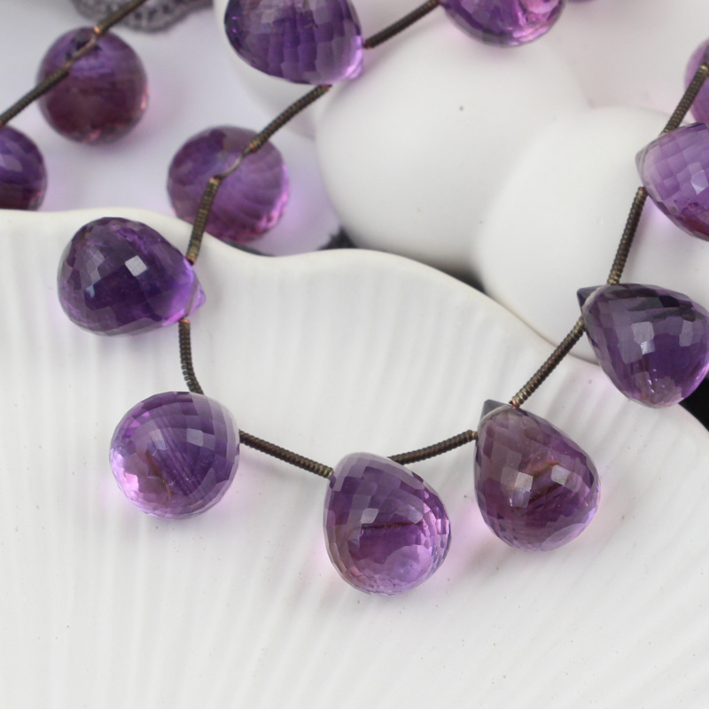 Fasetowanie pięknie wydobywa blask ametystu, sprawiając, że idealnie sprawdzi się w kolczykach, zawieszkach czy innych projektach biżuteryjnych. Doskonały do biżuteryjnych projektów jubilerskich, a także do wire wrappingu.