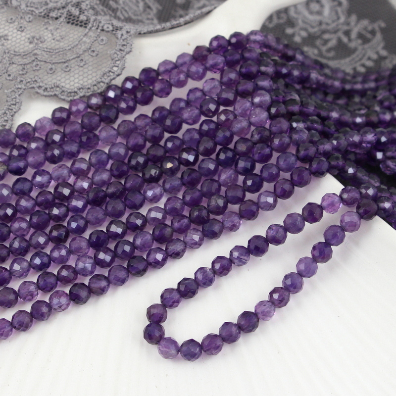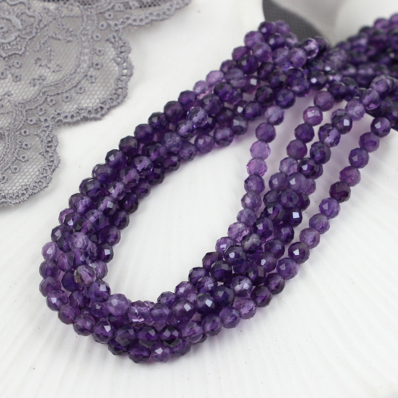 Ametyst kula fasetowana 4,5mm [sznur 38cm]
