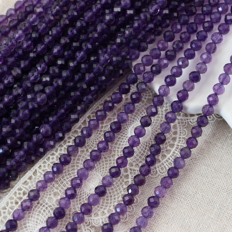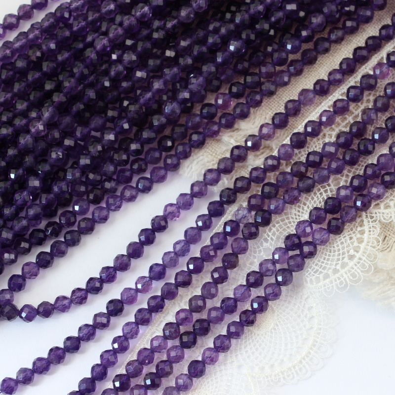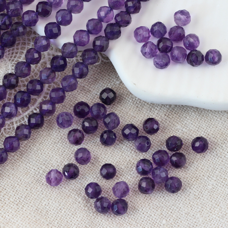 Ametyst kula fasetowana 4,5mm [sznur 39cm]