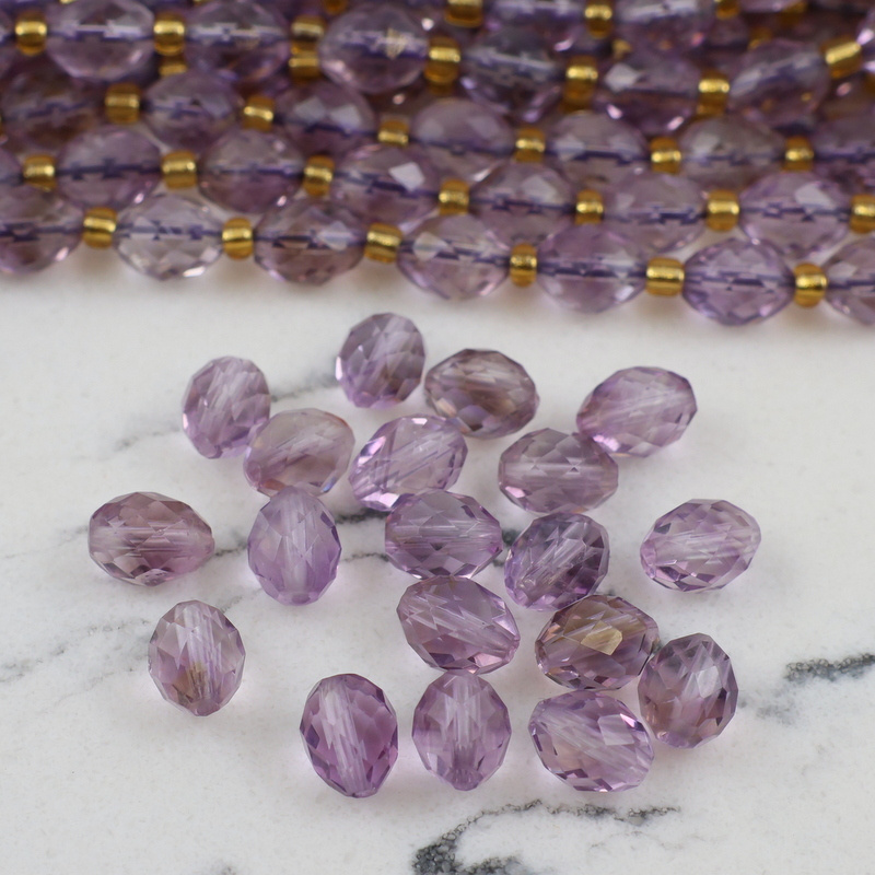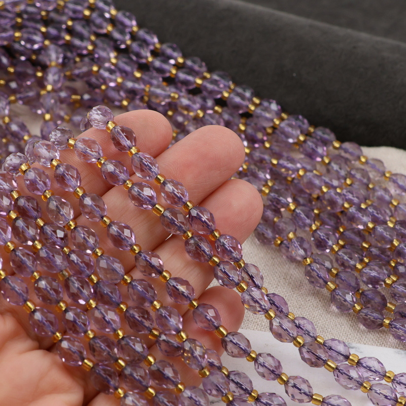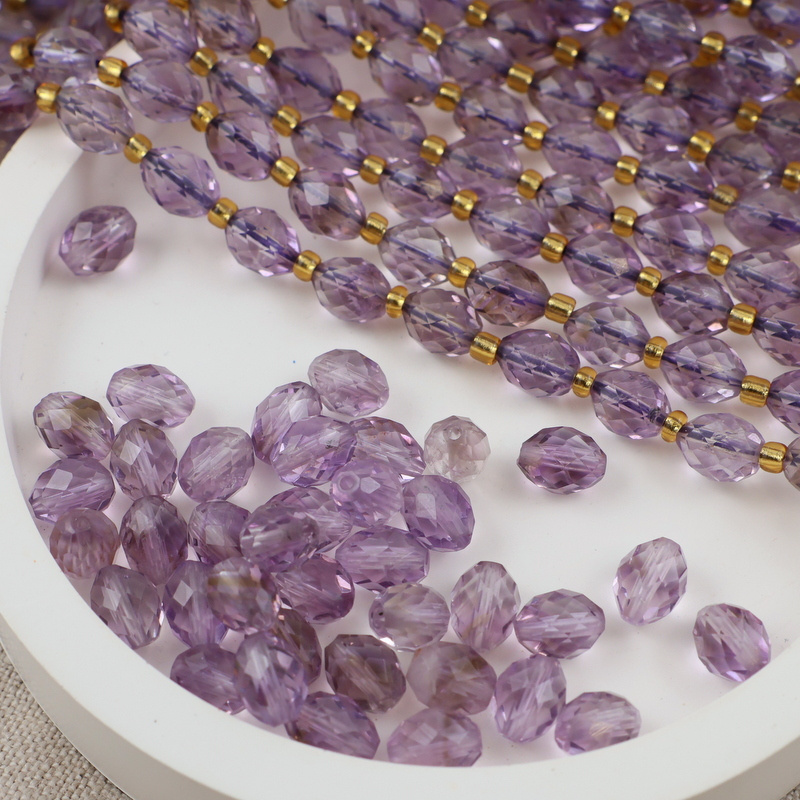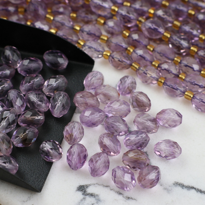 Kamienie ametystu w kształcie fasetowanych oliwek.