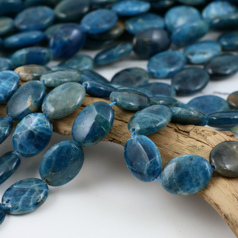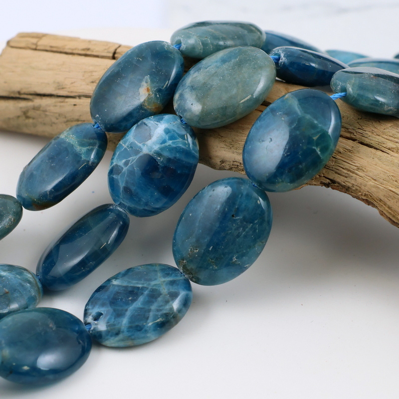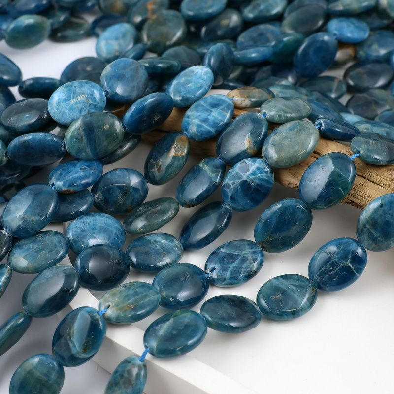Gładkie owalne kamienie naturalnego apatytu, na powierzchni mogą zdarzyć się naturalne wgłębienia, każdy kamień jest inny.