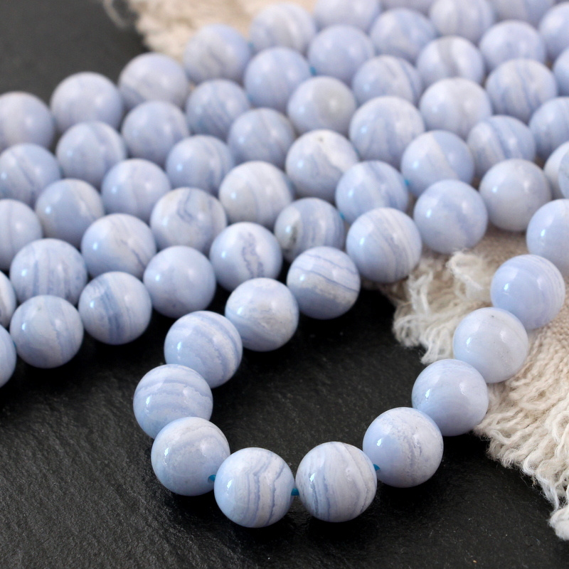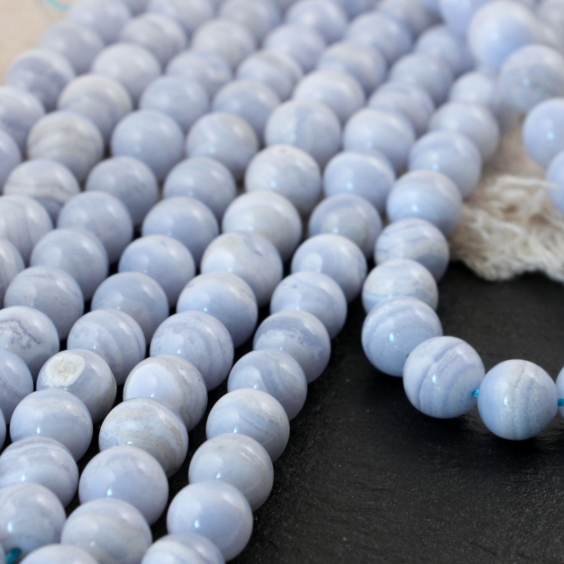 Kamień urzeka swoim spokojnym, chłodnym kolorem – od delikatnego błękitu po lekko mleczne tonacje, z subtelnym, półprzezroczystym wykończeniem.