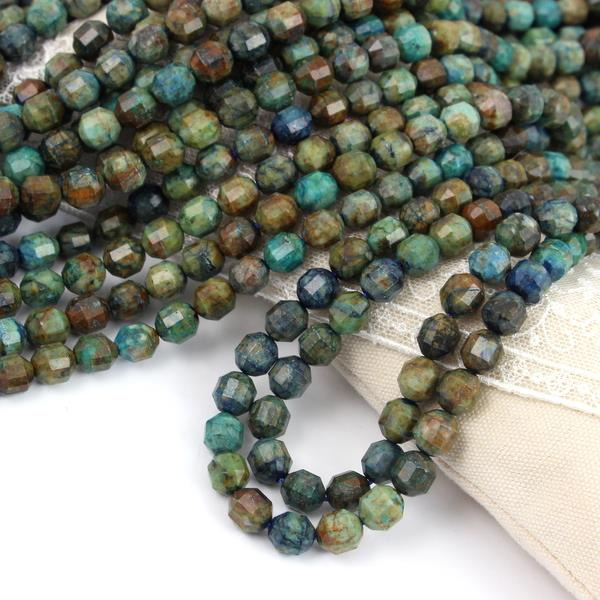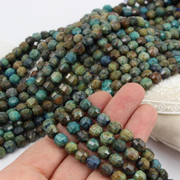 Naturalna chryzokola w postaci ładnie fasetowanych beczułek (prawie kule).