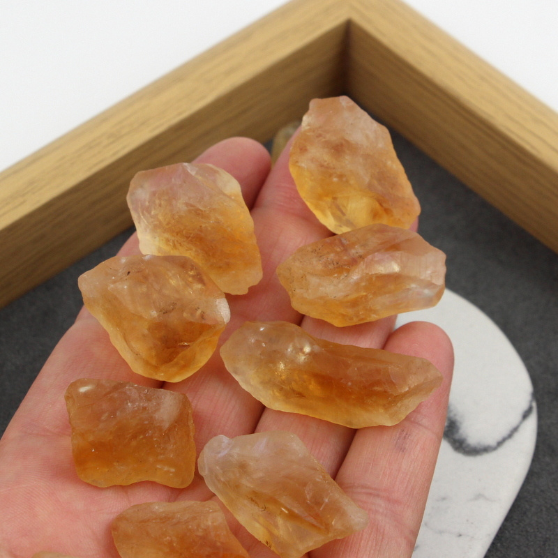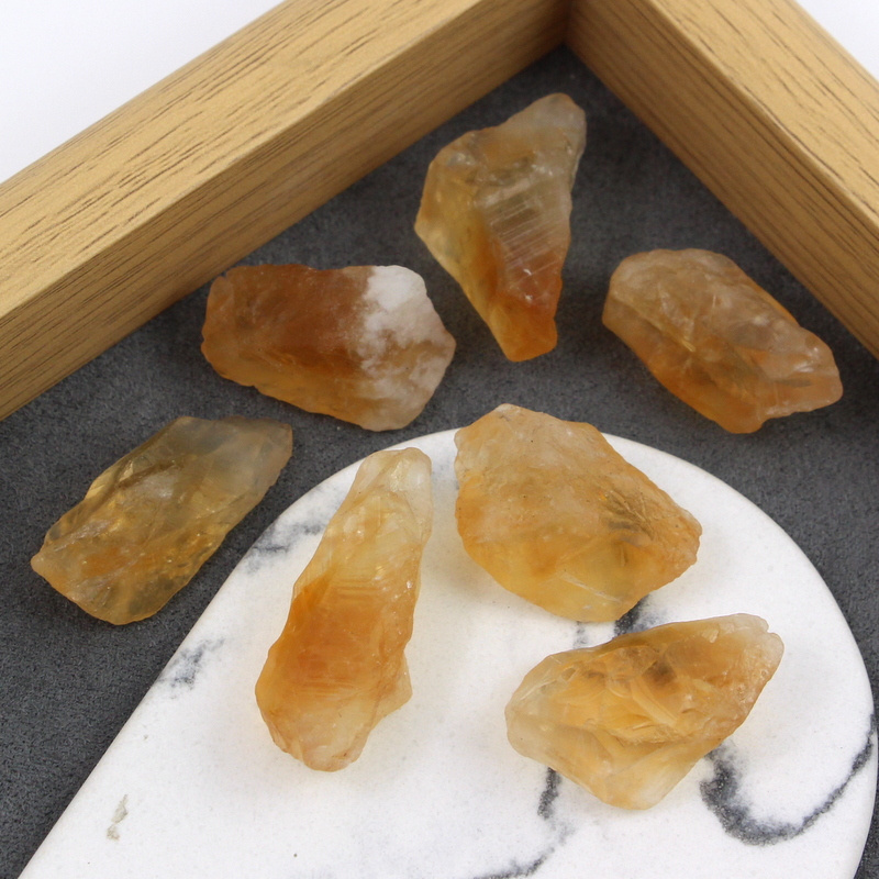 Bryłki naturalnego cytrynu bez otworu. Do wykorzystania w metaloplastyce (np. przy oplataniu drutem), a także do innych zastosowań.